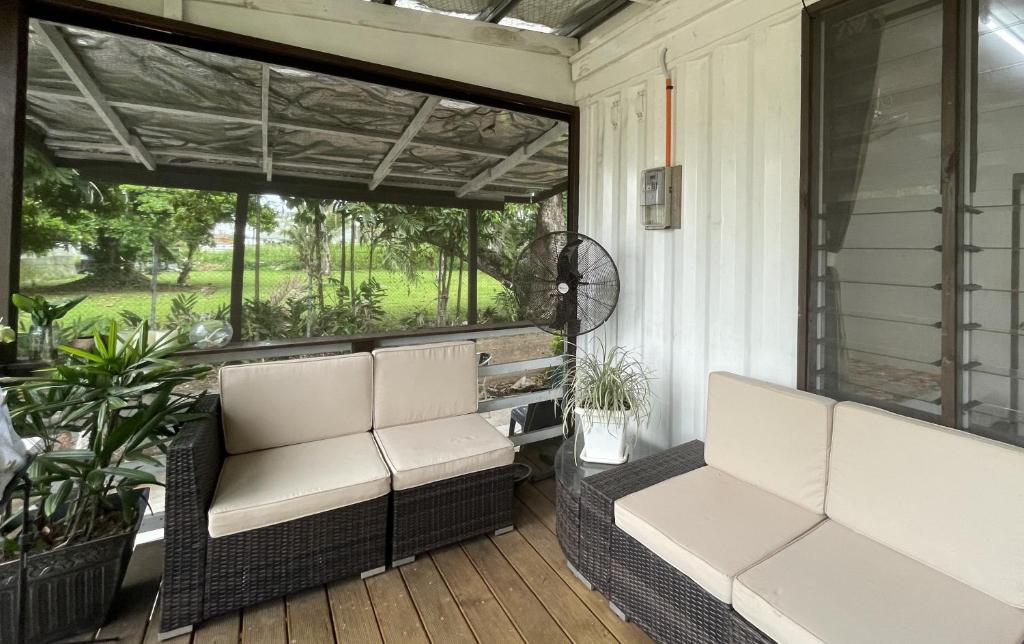 Boasting a private entrance, this spacious holiday home also comes with 1 living room, 3 separate bedrooms and 1 bathroom with a shower. This holiday home is air-conditioned and has a tea and coffee maker, a tiled floor and garden views. The unit has 5 beds.